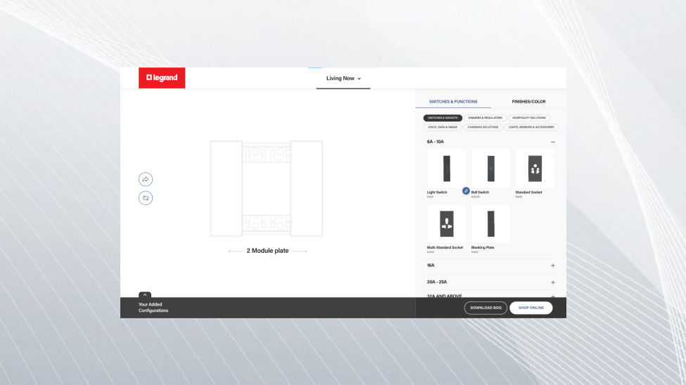 Enable customers to effortlessly design, preview, and purchase custom switches with a guided, real-time configurator. Deliver instant visual feedback, seamless BOQ/quote generation, and direct eShop conversion to increase engagement, ownership, and conversion rates while preserving premium brand experience.